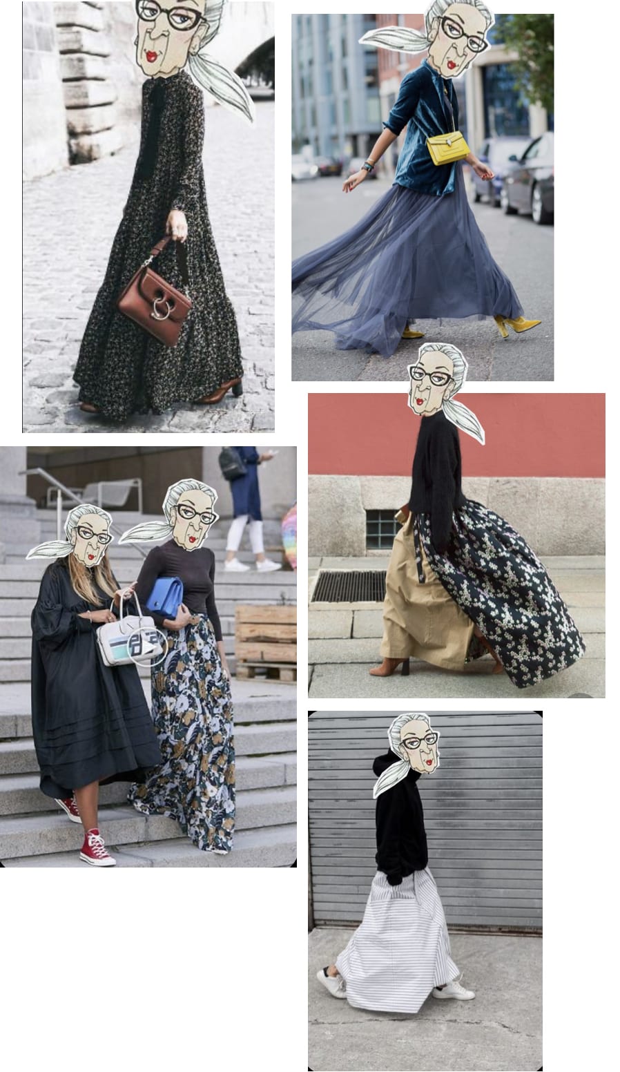 We see this fashion trend a lot right now, and I can only say, be careful with the maxi length dress or skirt! Comfortable to wear and a fabulous way to hide our legs or other parts of our bodies. But unless you are tall, the maxi length look is not for everyone. The length can really drag you down and make you look shorter (and broader), frumpier, and, ultimately, older.