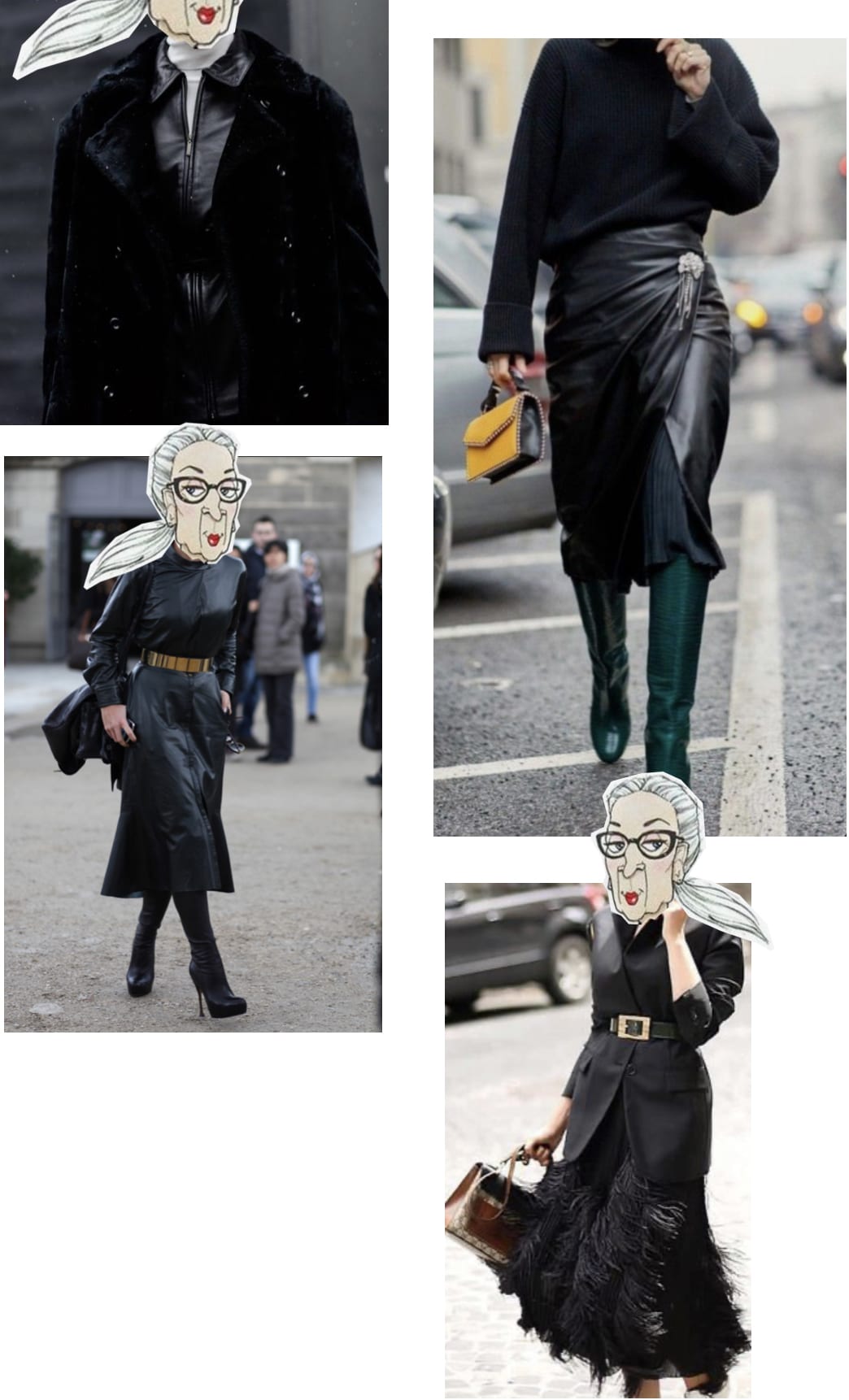 We all know that black is a complementary color, it is slimming, flattering, and easy to style. Fabulous reasons to love and wear black! But when we age, wearing black can make us look pale and draw attention to the face in a less flattering way. To create an overall black look works best when you use mix textures. Like a leather jacket with a silk skirt and a wool cardigan. You can also add the right accessories or showing more skin. This will make it look more put together, less stern and more expensive.