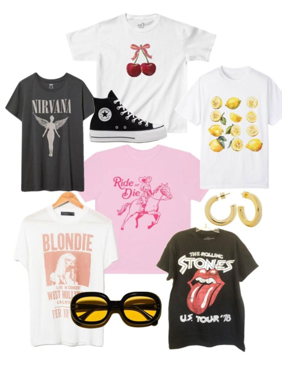 Starting with the graphic tee, nostalgia with a whimsical twist.