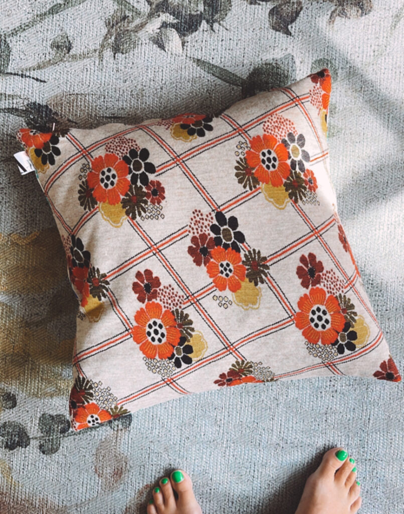 While searching for beautiful old things, I also found many vintage fabrics. At one point, it became such a pile that I decided to do something with it. Now, I will introduce the AndBloom pillowcases. They are all handmade pillowcases for the couch or bed. They are made with vintage fabrics, all with two different sides, an AndBloom label, and a new zipper. I applied the AndBloom letters by hand with glitter textile paint. They are machine-pre-washed at 30 degrees.